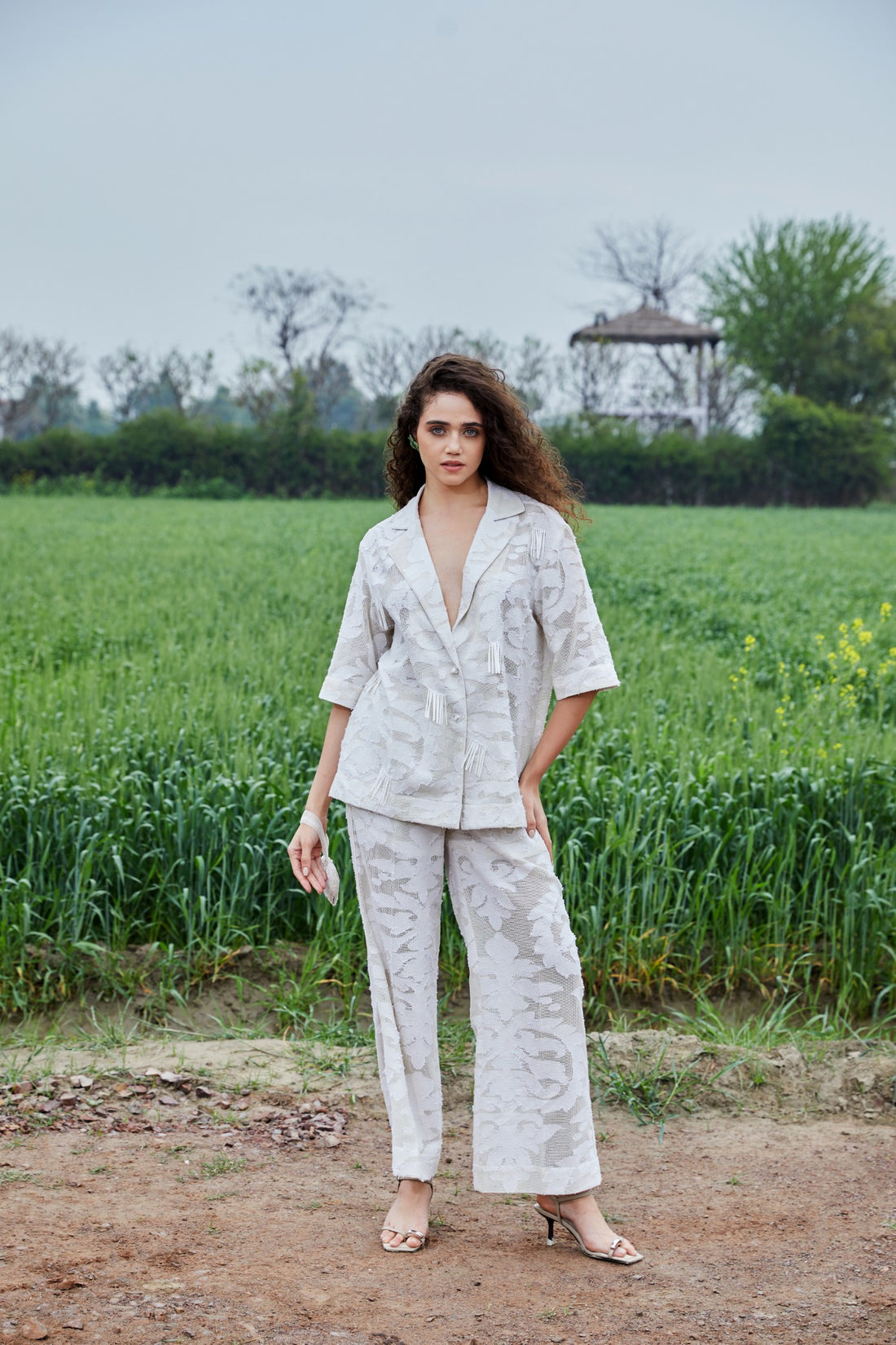 CRUNK IVORY SELF JACQUARD RESORT CO-ORD (SHIRT AND PANTS)