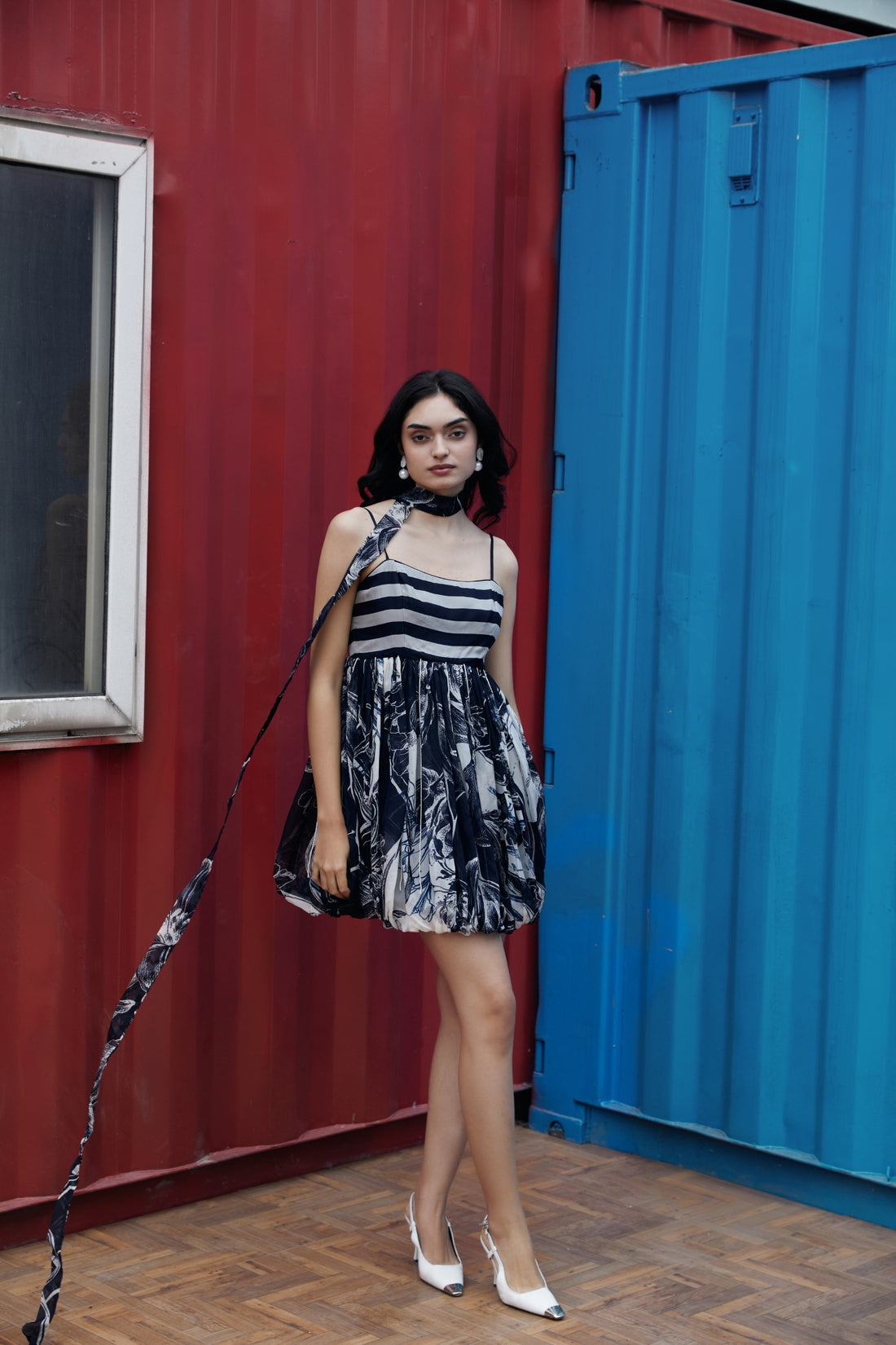 Product Name: CRUNK BLUE-WHITE ABSTRACT PRINTED DRESS Product Description: Slay the look by this CRUNK...