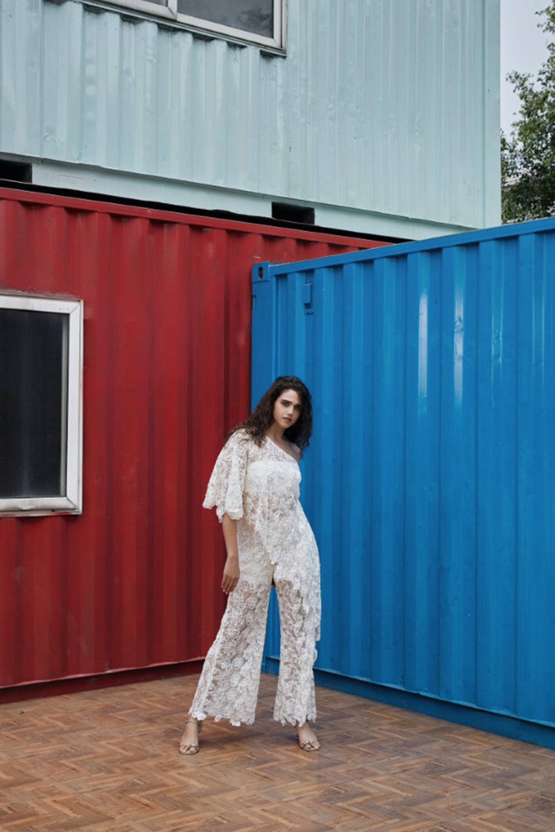 CRUNK IVORY ASYMMETRICAL FLORAL LACED TOP