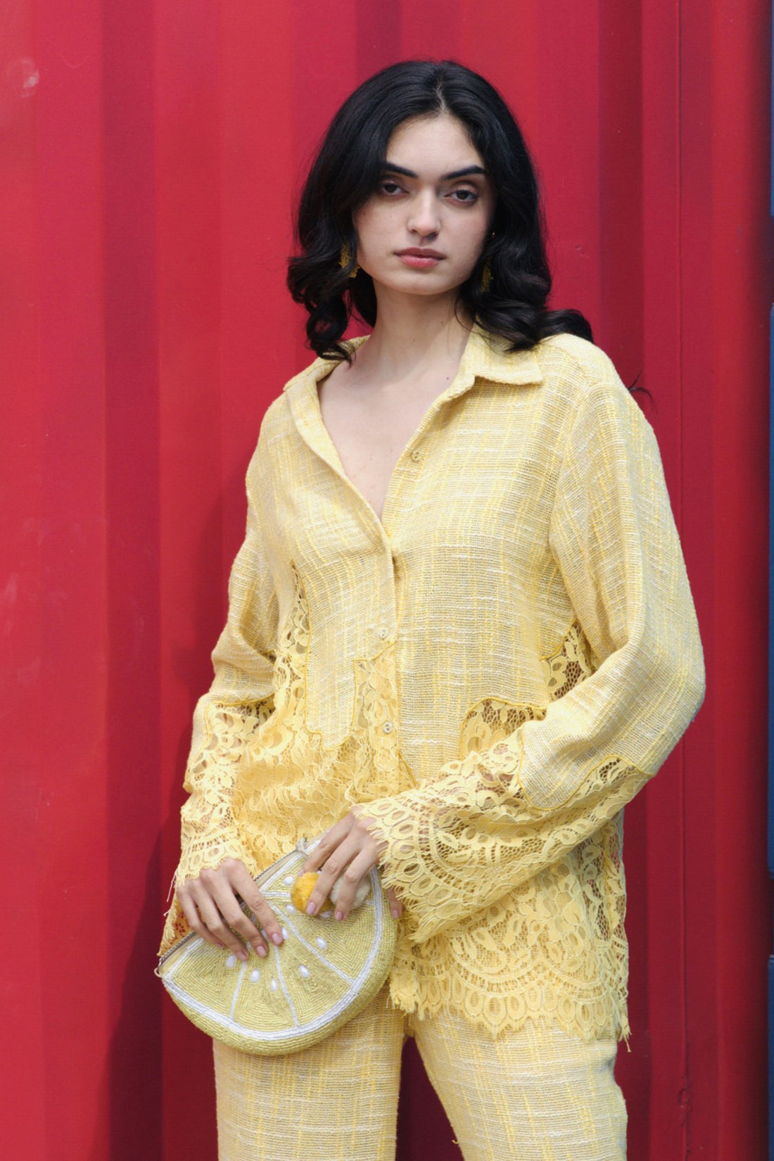CRUNK YELLOW LACE MIX SHIRT