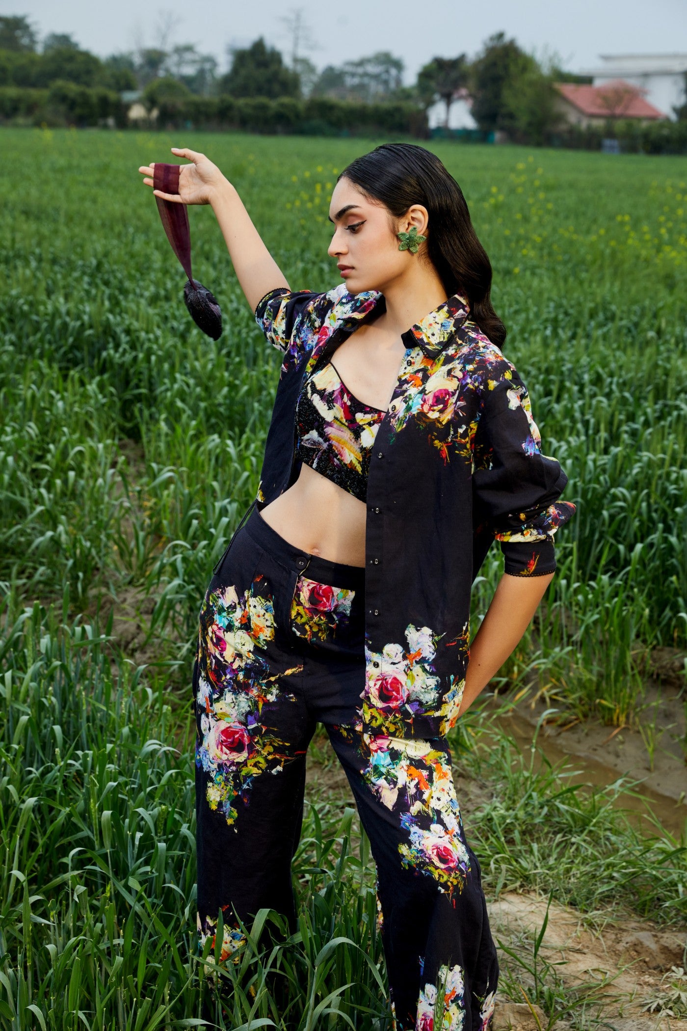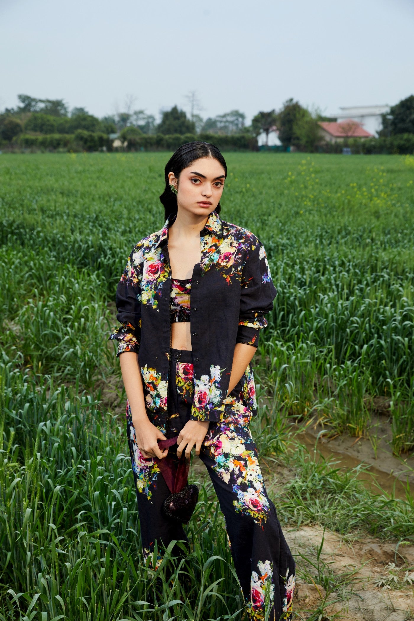 Product Name: CRUNK BLACK FLORAL PRINTED SHIRT