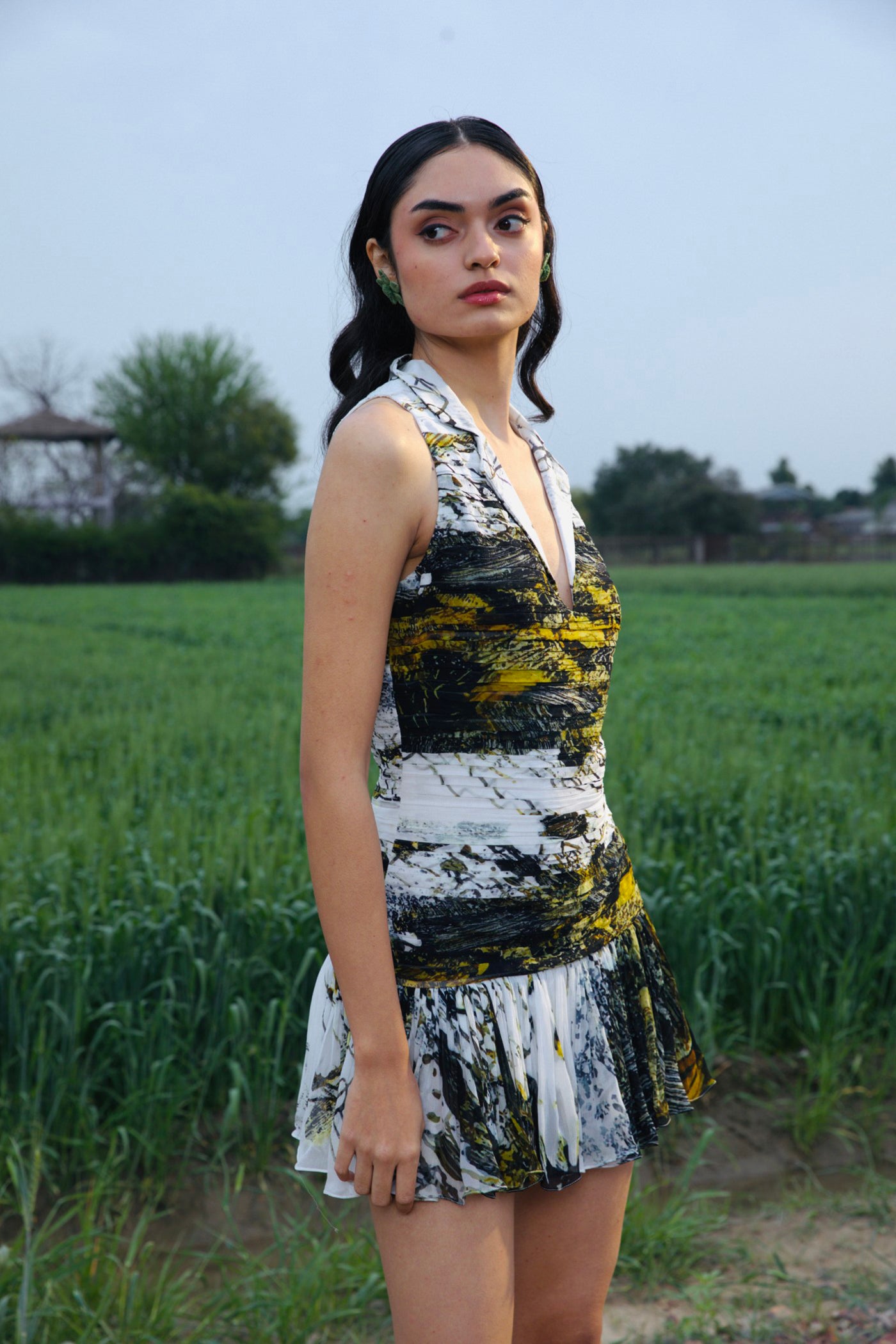 Product Name: CRUNK LIME-BLACK PRINTED RUCHED MINI DRESS