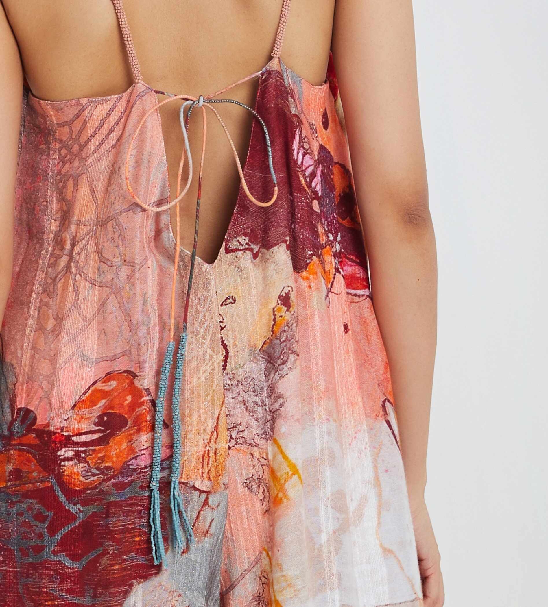 - Beaded straps and tassels on drawstrings