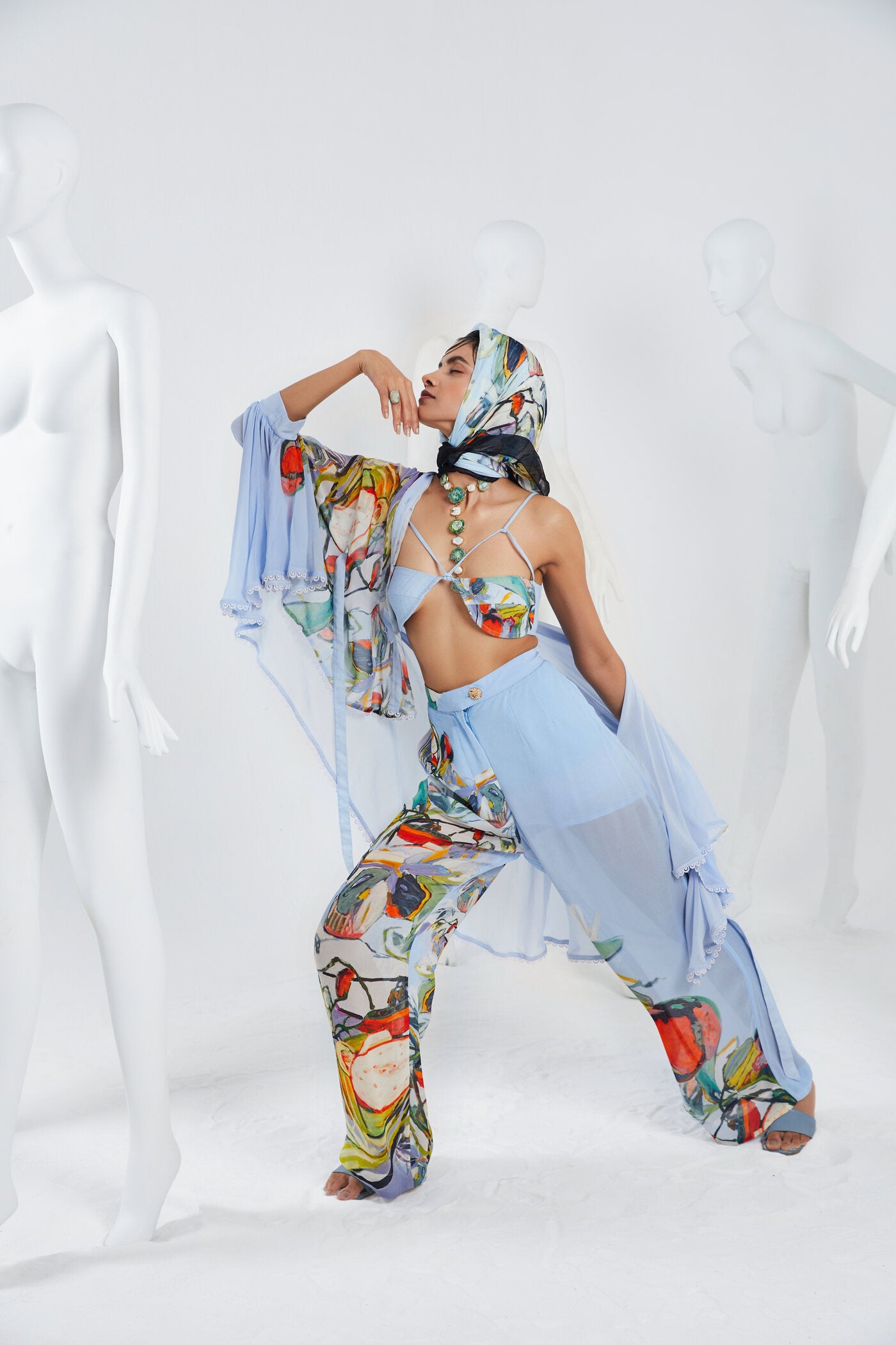 Add a touch of pure elegance to your wardrobe, by wearing our VIELLA Kaftan Shirt, drop dead gorgeously made in fabrics georgette designed in a fun abstract placement print, comes in a kaftan style, which has a belt included to cinch your waist. The style has an elevated kimono sleeve, and it gets fastened from the front with exclusive buttons. Perfect pairing with high-waisted pants to embrace the season.
