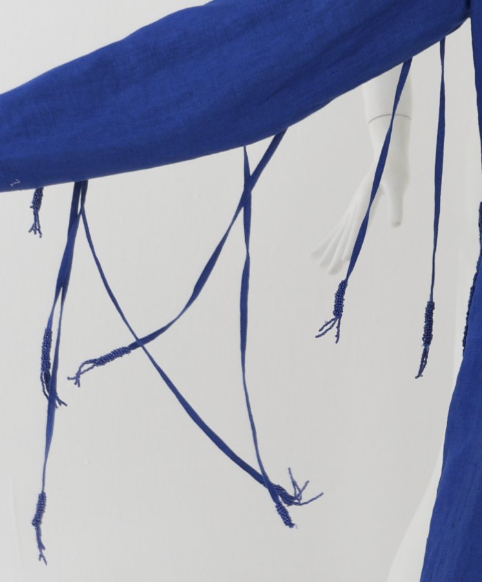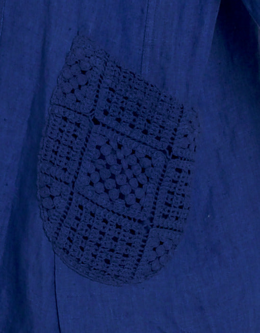 The VIELLA Shirt Dress is a statement and versatile style. Crafted from breathable cotton linen, with the button-down feature, drawstring openings at the sleeve and crochet-crafted patch pockets at the sides to add charm. With its oversized fit, classic shirt collar, front placket closure, and drawstrings at the sleeve heavily embellished with beads and apple hemline, it effortlessly blends casual chic with sophistication quotient.